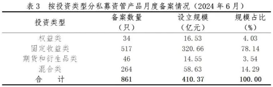 从投资类型看,6月备案产品以固定收益类与混合类产品为主。