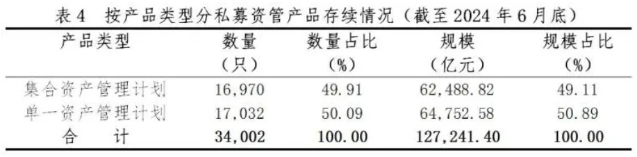 从产品类型看,存续单一资产管理计划数量与规模均高于集合资产管理计划。
