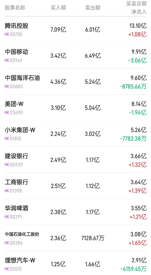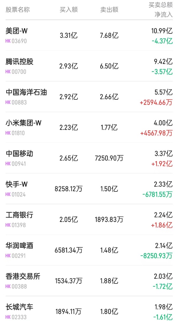 此外,中国移动(00941)、长城汽车(02333)分别遭净卖出1.14亿、1.6亿港元。