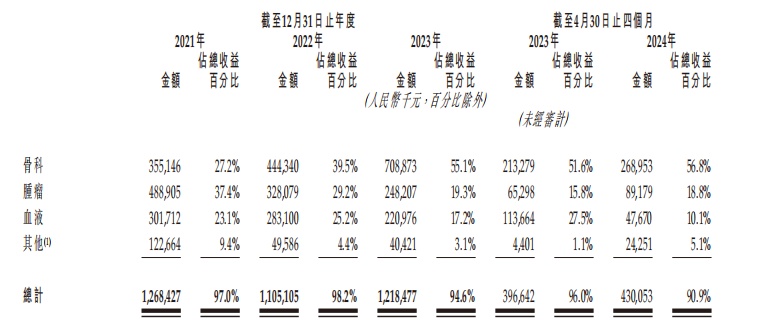 根据智通财经APP了解,曾与骨科领域三分天下的肿瘤和血液领域业绩滑坡的原因,与集采有很大关系。比如肿瘤领域的产品吉欧停,据招股书,“吉欧停”的两个规格分别中标第五、第七批国采后,收入由2021年的2.46亿元降为2022年的0.68亿元,现已沦落至千万元水平。