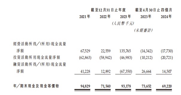 此外,九源基因的其他财务指标并不好看。期内公司的应收账款激增,由2021年的3.43亿元增至2024年4月30日止四个月的5.45亿元,同期公司的贸易应收款项的周转日数从90日增至131日,回款难度持续加大。要知道的是,2024年前4个月,公司的营收仅为4.73亿元,而5.45亿元的应收款,意味着其业绩现金含量堪忧。