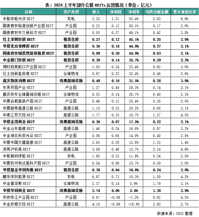 相较之下,租赁住房公募REITs的上半年净利率水平最高,达到了37.1%,主要是因为5只住房租赁公募REITs中有4只主做保障性租赁住房业务,收益较高。