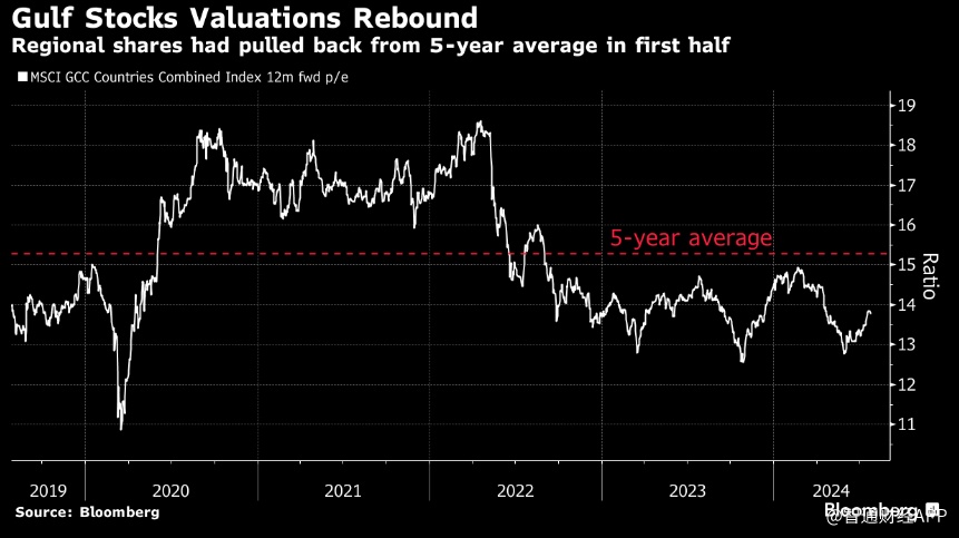 智通财经APP获悉,海湾地区股市在2024年上半年暴跌后,今年夏天迎来反弹,原因是乐观的盈利报告和较低的估值吸引了买家。截至周三收盘,MSCI海湾合作委员会国家综合指数本月上涨3.6%,延续了6月份的涨势。迪拜在区域基准指数中领涨,阿布扎比、沙特阿拉伯、科威特和卡塔尔的股指也出现上涨。