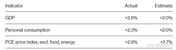 智通财经APP获悉,美国第二季度经济增长速度超过预期,表明在高利率的压力下,需求仍保持稳定。初步数据显示,美国第二季度国内生产总值(GDP)同比增长2.8%,超过市场预期的2.0%,前一季度为1.4%。美国经济的主要增长引擎——消费者支出增长2.3%,也高于预期。
