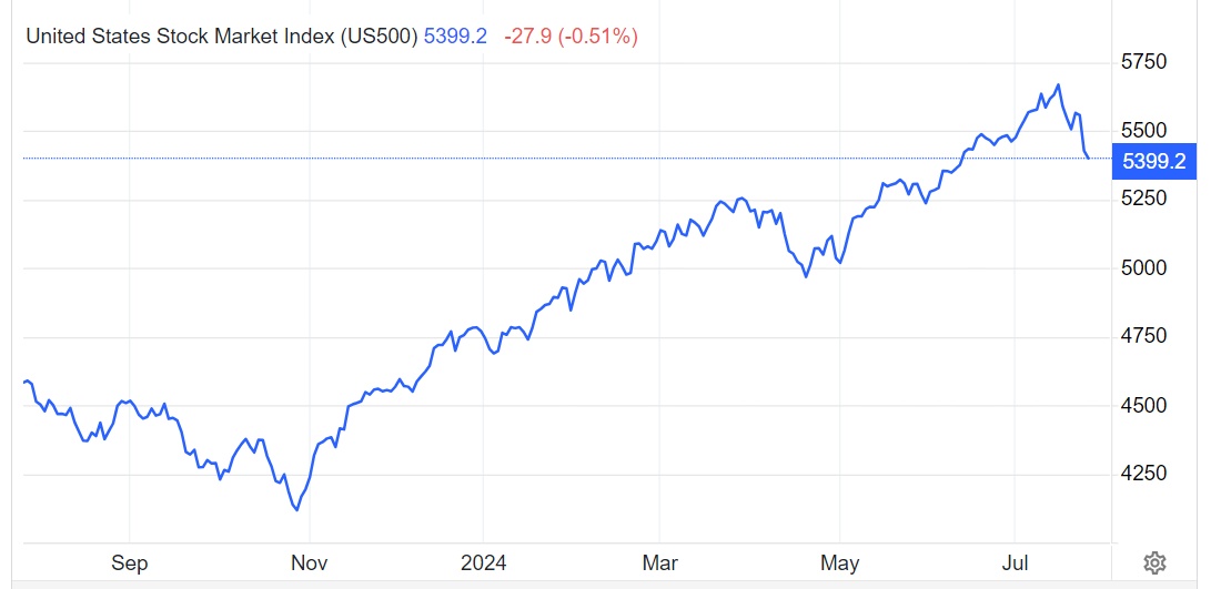 在周四,标普500与纳指连续三日下跌,小盘股基准指数——罗素2000指数则自7月以来持续跑赢标普500指数,意味着在美联储降息预期主导下,市场资金持续轮动至股价长期遭重创的小盘股,小盘股往往更加受益于降息。“七大科技巨头”占高权重的两大基准指数近期大幅调整的背后,除了市场担忧AI盈利前景以及估值处于历史最高位的科技巨头们业绩可能达不到市场予以的超高业绩预期,“懂王”重返白宫可能带来的加征关税这一不利于股市的负面预期也是主导逻辑。