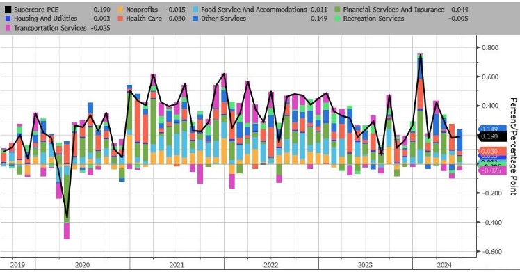 政策制定者密切关注不包括住房和能源在内的服务业通胀,后者往往更具粘性。数据显示,6月份这一指标连续第二个月环比增长0.2%。6月份住房相关价格上涨0.3%,与过去三个月每个月0.4%的涨幅相比略有放缓,是至少自2023年1月以来最小的月度涨幅。商品价格环比下跌0.2%。