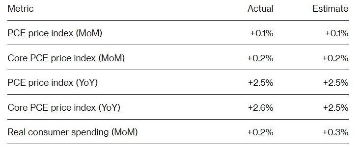 智通财经获悉,美联储青睐的衡量美国潜在通胀的指标6月份温和上升,消费者支出保持健康,这些迹象鼓舞了希望在不破坏经济的情况下给通胀降温的官员。美国经济分析局周五公布的数据显示,剔除波动较大的食品和能源项目的核心PCE价格指数较5月份上升0.2%,同比上涨2.6%;市场预期分别为0.2%、2.5%。