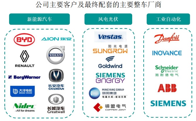 近年来,新能源汽车市场的快速发展为车规级被动元器件带来了巨大发展机遇,公司持续投入车规级薄膜电容、车规级升压电感等产品的研发,在纯电动汽车、插电式混合动力汽车和增程式电动汽车等主流技术路线均有成功量产项目或定点项目经验,成功配套比亚迪DM-i系列插电式混合动力汽车、比亚迪王朝系列纯电动汽车、沃尔沃XC系列插电式混合动力汽车、广汽埃安系列纯电动汽车、长城哈弗系列插电式混合动力汽车、小鹏X9、理想L系列等多款车型。