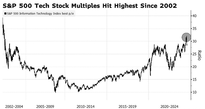 标普500指数上半年14%的涨幅中,美国六大科技股贡献了大部分。自1999年以来,市值加权指数比其同等权重指数高出最多。科技巨头估值飙升,标普500指数信息技术指数本月早些时候触及2002年以来的最高预期市盈率。Abate称:“大型科技股的定价是完美的,它几乎占了市场所有的涨幅,但这恰恰突显了该集团的脆弱性。”