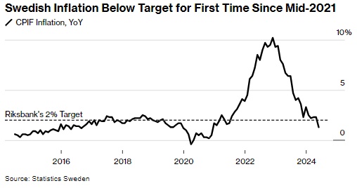 值得一提的是,瑞士统计局此前一项的声明进一步揭示了通胀率的下降趋势。6月份的核心通胀率,即扣除能源成本和利率变动影响后的通胀率,降至2.3%,这是自2021年12月以来的最低水平,并且低于所有彭博调查估计值和央行2.5%的预测。这一数据支持了瑞典央行的判断,即价格压力正在缓解,为央行在今年年底前可能的两到三次基准利率下调提供了依据。