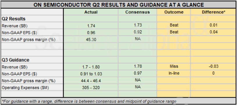 数据显示,这家工业及汽车CMOS图像传感器(CIS)及功率半导体大厂Q2调整后每股收益为0.96美元,超过了分析师预期的0.92美元,营收同比下降17.1%至17.4亿美元,但略高于普遍预期的17.3亿美元。