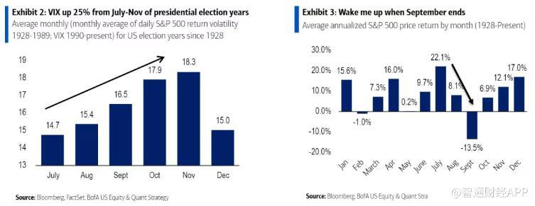 与此同时,美国总统大选临近,股市可能会看到波动性增加。自1928年以来,在选举年期间,芝加哥期权交易所波动率指数(VIX)从7月到11月平均上涨25%,这是股票市场的“风险背景”。根据美银策略师的说法,VIX在7月已经飙升32%,有望创下两年多来的最大月度涨幅。