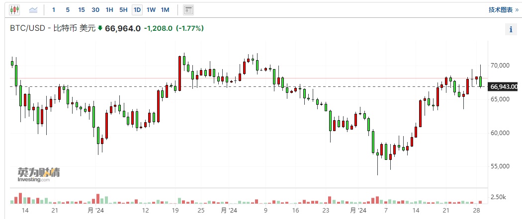 智通财经APP获悉,7月29日,加密货币普涨,比特币时隔近2个月再次触及70000美元,距离历史新高仅一步之遥。消息面上,美国共和党总统候选人特朗普近日对比特币的积极表态,以及承诺对加密货币行业实施更友好的监管政策,对市场产生了积极的影响。