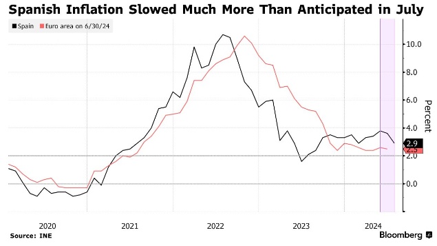 另一份来自西班牙的报告显示,受能源和食品价格下跌的影响,西班牙7月份的通货膨胀率远低于预期,为2.9%。