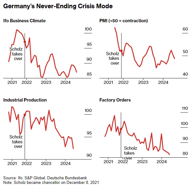 慕尼黑Ifo经济研究所调查主管Klaus Wohlrabe表示,"德国经济陷入危机,"“第三季度改善的希望渺茫。”