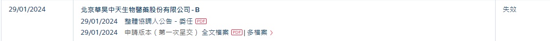 通财经APP获悉,北京华昊中天生物医药股份有限公司(以下简称:华昊中天)于2024年1月29日递交的港股招股书满6个月,于7月29日失效,递表时建银国际、中信建投国际为其联席保荐人。