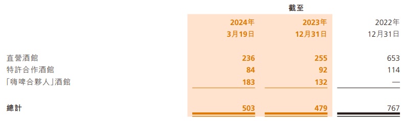 而若分门店类型来看,海伦司旗下酒馆的类别分布也在过去一年多里发生了重大变化。数据显示,截至去年底,海伦司直营酒馆的数量为255家,较前一年的653家缩水约六成;同期,公司的特许合作酒馆数量为92家,亦较上年的114家有所减少。