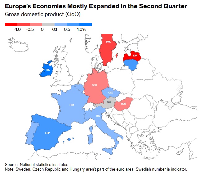 据了解,在截至6月份的三个月里,欧元区GDP增长0.3%,与年初持平。这超过了经济学家0.2%的预测中值,因为法国和西班牙都超过了预期,意大利保持经济增长态势,然而欧洲最大规模经济体,同时也是最依赖制造业的德国经济陷入萎靡,出现0.1%的环比降幅。