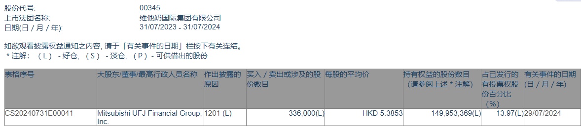 Inc.减持维他奶(00345)33.6万股,每股作价5.3853港元,总金额约180.95万港元。减持后最新持股数目约为1.5亿股,持股比例为13.97%。