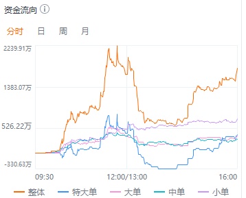 而从资金实时流向来看,特大单资金在短时间内大进大出,而中小单,尤其是小单则呈现资金持续流入现象。