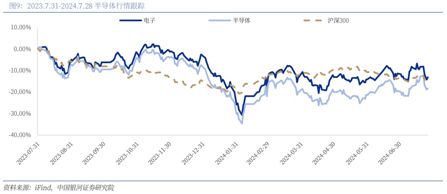 半导体行业逐步走出低谷,亦为市场情绪注入一剂强心针。根据iFind数据,近一个月半导体行业指数跑赢沪深300指数3.82个百分点,行业指数涨跌幅为2.41%,高于同期的沪深300指数涨跌幅为-1.41%。