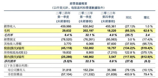 据智通财经APP了解,今年一季度,华虹半导体实现销售收入约4.6亿美元,同比减少27.1%,环比增长1%;毛利率录得6.4%,虽低于去年同期的32.1%,但较2023年四季度的4%实现环比增长。此外,今年一季度,华虹半导体月产能为39.1万片8英寸等值晶圆。总体产能利用率为91.7%,较上季度上升7.6个百分点。