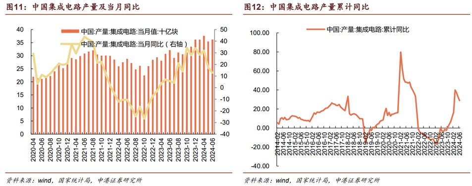 国内的半导体行业同样迎来了复苏的春风。根据国家统计局数据,6月我国集成电路产量362亿块、同比增长12.8%,年内累计产量同比增长28.9%,周期向上态势明显。