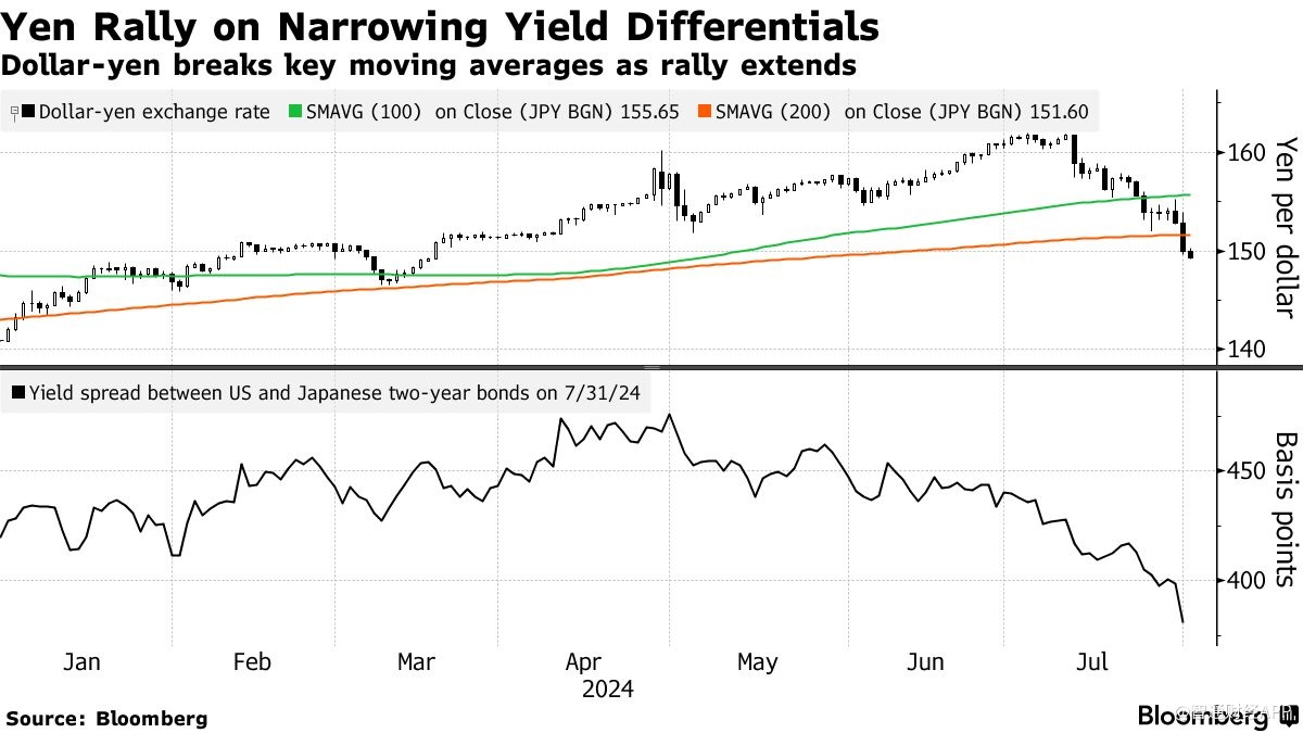 福冈金融集团的首席策略师Tohru Sasaki也不相信日元的强势会持续下去。他表示,虽然短期内日元可能走高,但当焦点回归到利差和经济基本面时,日元兑美元可能再次跌向160的水平。