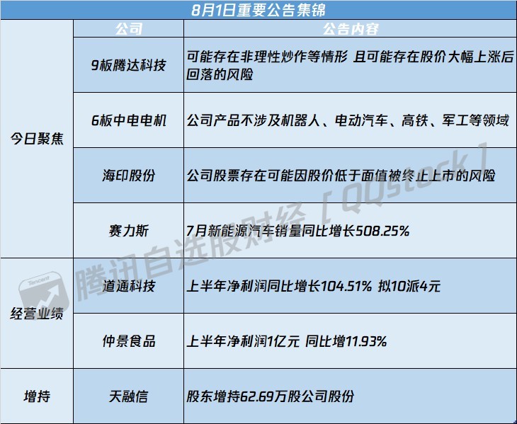 1、9板腾达科技:可能存在非理性炒作等情形 且可能存在股价大幅上涨后回落的风险
