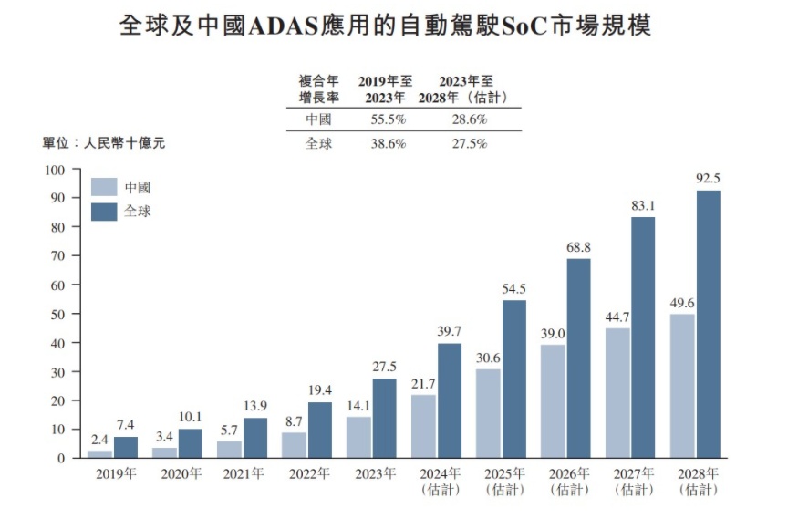 而在支持L3-L5的ADS将于2024年爆发之际,支持L1-L2的ADAS仍在持续的快速成长中。Frost Sullivan表示,得益于政策的支持、成本的持续下降以及市场对自动驾驶认可度的不断提升,国内ADAS应用的自动驾驶SoC市场将从2023年的141亿增至496亿,年复合增速28.6%,略高于同期全球的增速27.5%。至2028年时,全球市场规模将逼近千亿人民币。
