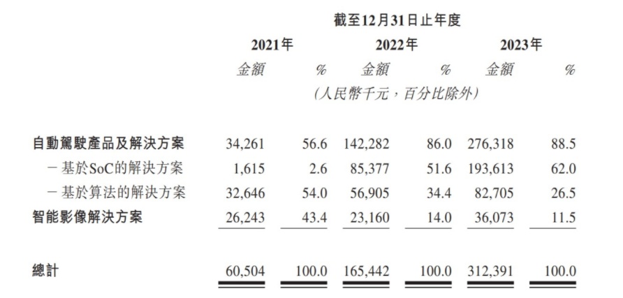 例如在客户拓展方面,2023年时,黑芝麻智能的客户数量为85名,较2022年的45名接近翻倍增长。在出货量方面,2024年3月旗舰A1000系列SoC的总出货量已超过15.6万片。在商业化方面,黑芝麻智能的收入从2021年的6050.4万元大幅增长至2023年的3.12亿元,年复合增速高达127%,自动驾驶产品及解决方案的收入占比也从2021年的56.6%快速提升至2023年的88.5%。