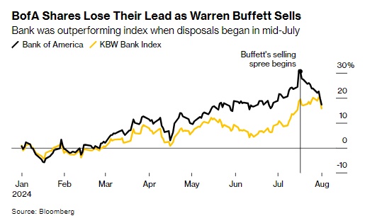 根据周四晚些时候提交给监管机构的一份文件显示,在最新的资产处置中,伯克希尔哈撒韦(BRK.A.US)在7月30日至8月1日期间售出了7.79亿美元的美国银行股票。根据当天的收盘价,该行仍持有该银行超过9.42亿股股票,价值372亿美元。