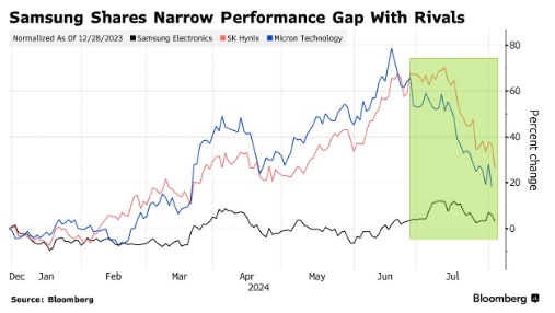 “由于对人工智能服务器需求的预期过高,SK海力士的股价过于乐观,”Ito表示,“由于估值较低,我们仍然更青睐三星而不是SK海力士,如果三星成功通过英伟达的HBM3E资格测试,将成为缩小估值差距的催化剂。”