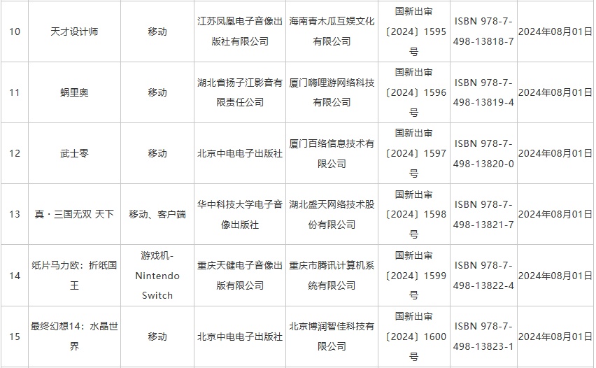 8月进口网络游戏版号下发 共15款游戏获批 腾讯(00700)、网易(09999)在列