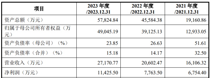 财务方面,2021年度、2022年度、2023年度,思看科技实现营业收入分别约为人民币1.61亿元、2.06亿元、2.72亿元,同期实现净利润约为人民币6754.40万元、7763.50万元、1.14亿元。