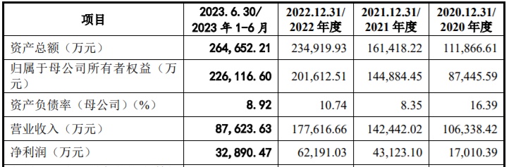 财务方面,2020年、2021年、2022年及2023年1-6月,巍华新材实现营业收入分别约为人民币10.63亿元、14.24亿元、17.76亿元、8.76亿元,期内净利润分别约为1.70亿元、4.31亿元、6.22亿元、3.29亿元。