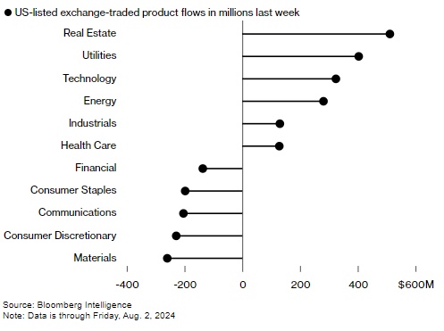 这一策略已经开始显现效果。彭博行业研究的数据显示,上周投资者向美国房地产和公用事业行业的交易所交易基金投入了近10亿美元,而向科技ETF投入的资金仅为3亿美元。