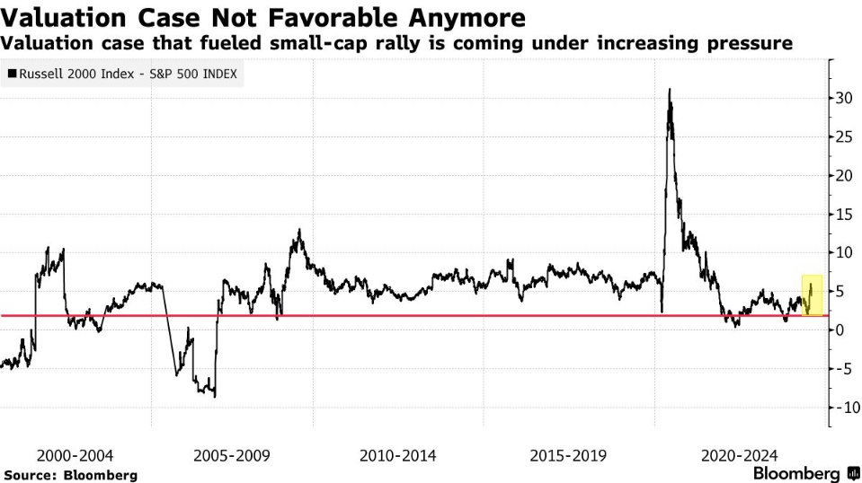 然而,随着两者之间的估值差距扩大,罗素2000指数的买盘开始枯竭。该指数通常被视为风险偏好的代表,自7月16日达到顶峰后下跌了6.8%。