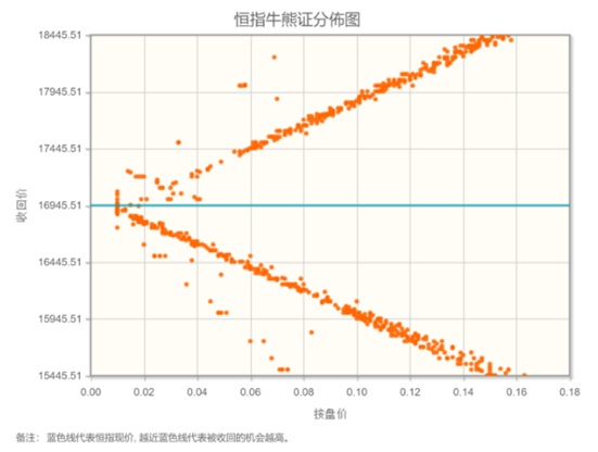 从恒生指数牛熊街货分布情况看,16945点位置,牛熊证密集区靠近中轴,港股蓄势反弹。上周美联储降息预期加强,人民币汇率大涨,恒生指数本周看涨。