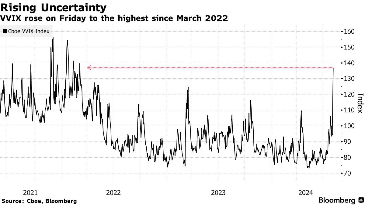 Bloomberg Intelligence首席全球衍生品策略师Tanvir Sandhu表示:“如果波动率指数的波动率保持在高位,这可能意味着人们对一个更动荡时期的预期。”
