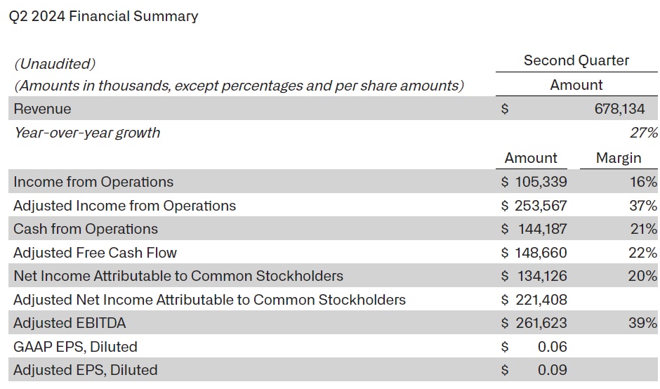 在强劲的商业与政府部门业绩带动之下,第二季度该公司总营收同比大幅增长27%,达到6.78亿美元,超过了华尔街分析师们预期的6.528亿美元。截至6月的第二季度净利润则意外增长20%至1.34亿美元,分析师们此前普遍预计净利润仅仅为8280万美元。Palantir第二季度调整后的EBITDA则高达2.62亿美元,同比大幅增长39%。