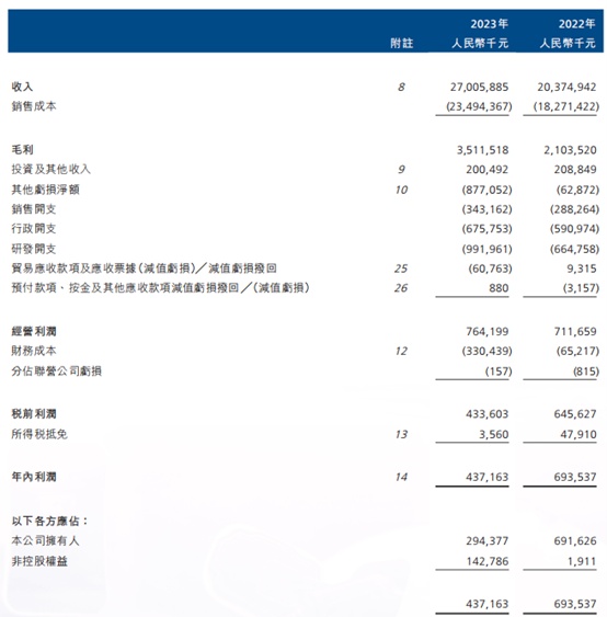 财报显示,2023年公司财务成本约为3.3亿元,同比大增超4倍,远高于销售开支、行政开支的同期增速;2023年,公司持续加大研发投入,研发支出达到9.9亿元,同比增长50%。
