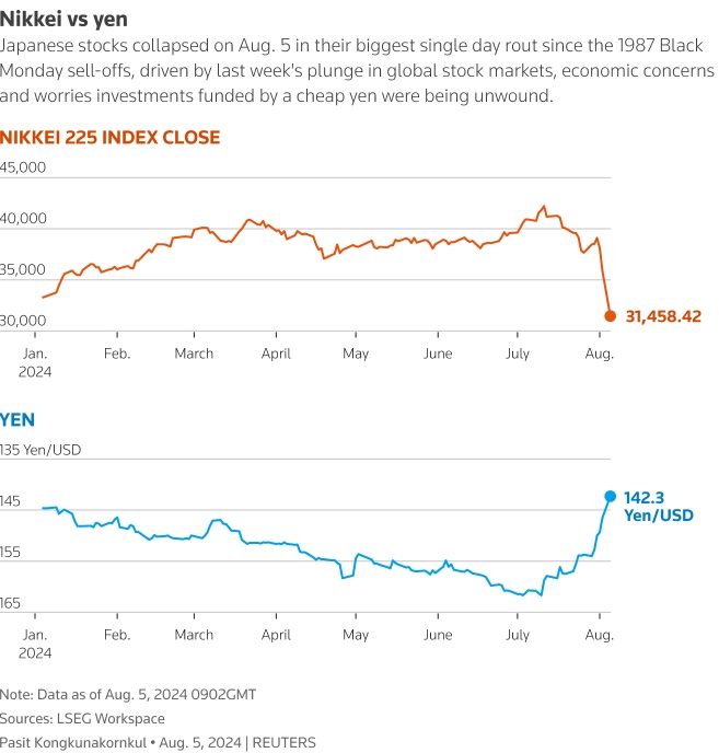 BlueBay资产管理公司首席投资官Mark Dowding表示,“根据我们的评估,此次(市场抛售)在很大程度上归因于仓位投降,因为许多宏观基金在交易中犯了错误,并触发了止损,最开始是外汇和日元。”他指的是触发买入或卖出的预定水平。