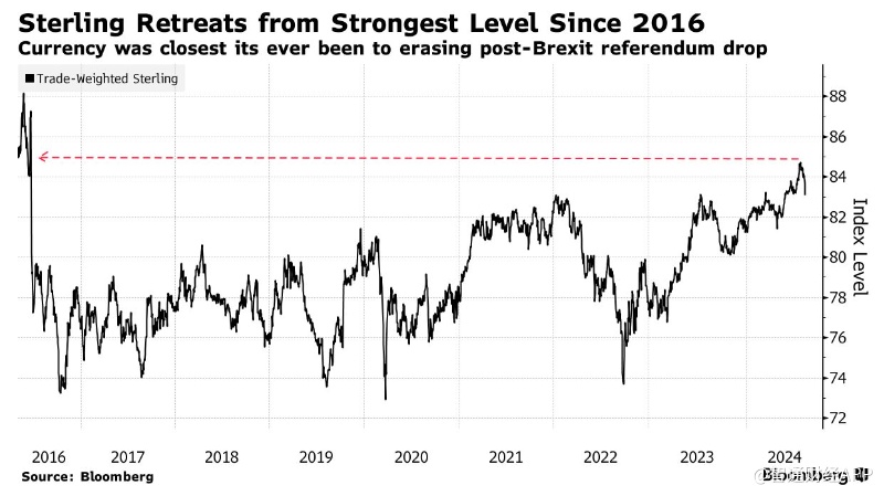 尽管英镑有所回落,但投资者仍预期英镑将进一步走强。即使在英国央行上周四自2020年初以来首次下调利率之后,情况也是如此。在工党7月4日以压倒性优势赢得大选后,市场对英国的前景变得更加乐观。