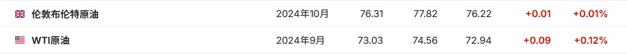 3. 截至发稿,WTI原油涨0.12%,报73.03美元/桶。布伦特原油涨0.01%,报76.31美元/桶。
