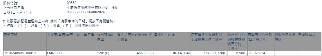 LLC减持中国通信服务(00552)46.6万股,每股作价4.0347港元,总金额约为188.02万港元。减持后最新持股数目为1.67亿股,持股比例为6.98%。
