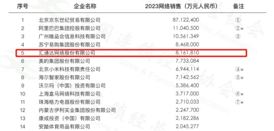 智通财经APP获悉,8月6日,中国连锁经营协会(CCFA)发布“2024中国网络零售Top 100”,汇通达网络股份有限公司(09878)以816.181亿元的网络销售额位居百强榜第5名,彰显公司在网络零售领域稳健强劲的发展态势。
