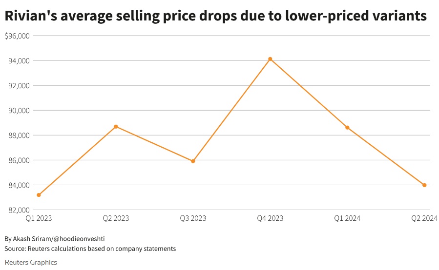 Rivian表示,第二季度销售的大部分汽车都来自削减生产成本之前的库存,这意味着在此期间没有实现大部分效率提升。因此,该公司预计,第三季度的交付量将略有下降。