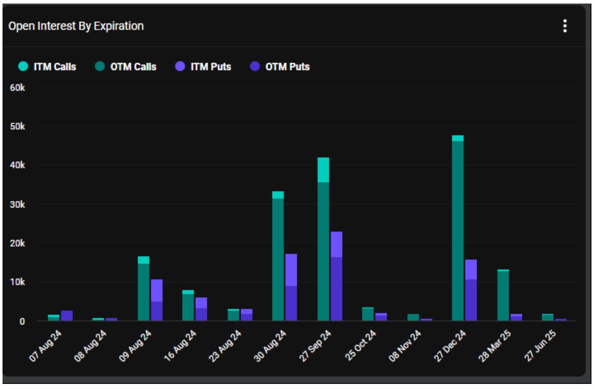 Doshi 表示,截至今日,9 月 90000 美元看涨期权、12 月 100000 美元看涨期权和明年 3 月 100000 美元看涨期权是上市市场上最大的未平仓合约,仅这三个期权的名义价值就接近 10 亿美元。周二,纽约比特币价格上涨约 4.5%,至 56,850 美元。