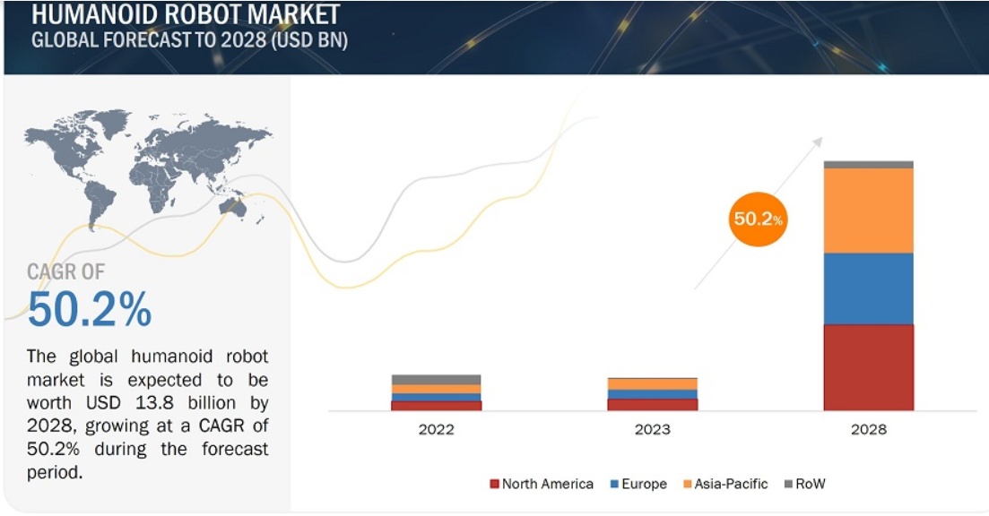 Markets And Markets近日公布的预测报告显示,2023年全球人形机器人市场规模预计仅仅约18亿美元,到2028年有望迅速扩张至138亿美元规模,复合年增长率有望超过50%。马斯克6月份在特斯拉股东大会上可谓语出惊人,他表示“擎天柱”人形机器人可能将成为特斯拉市值提升到25万亿美元的最核心催化剂。